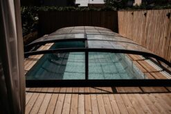 Nova Comfort passar alla standardpooler, både med och utan poolsarg. Modellserien är mycket populär och uppfyller alla krav som man kan ställa på ett pooltak med elegant design och robust konstruktion. Nova Comfort passar särskilt väl för dig som är ute efter ett något högre pooltak. Nova Comfort ger dig gott om rum att simma under taket. När pooltaket är stängt är det barnsäkert och kan endast öppnas med nyckel.
